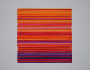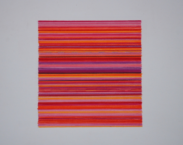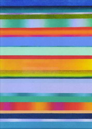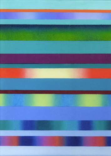 | Most of my stripe works, which concerntrate on the simultaneous vibrancy of colour, have been painted with oil paints. But I also love to work with coloured pencils, and these two drawings are examples of stripes in another medium. Here in Cornwall some new and rather different small drawings have developed, which I will be uploading onto the website soon. |