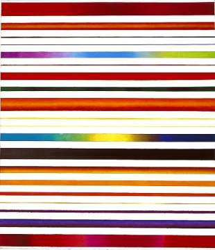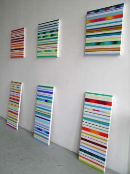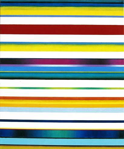 | My current work with stripes utilises the effect that colours have upon each other. The colours are vital and bright, preferably intoxicatingly so! Each colour's position on the canvas enables it to be seen more strongly and appreciated for its worth amongst the other colours. The stripes crystalise from the search for the best form to give the desired effect. The lines have a calm and rational influence on the paintings. However the colour combinations cannot be rationally grasped. | |||||||||||||||||||||||||||||||||||||||||||||||||||||||||||||||||||